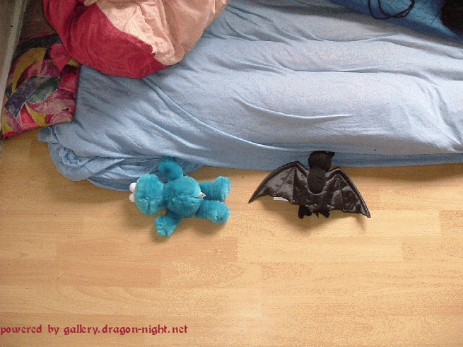 Albin's Begleitung. Ein Krümelmonster und eine Fledermaus.